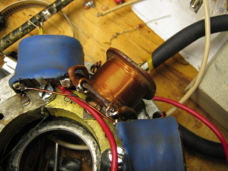 Два стандартных магнитопровода,На одном заводские кат зарядки-2шт,на втором одна катушка от контактного,одна с катушкой зажигания по схеме Дмитрия(как резервное).Каждая катушка имеет свой диодный мост-3катушки-3моста.