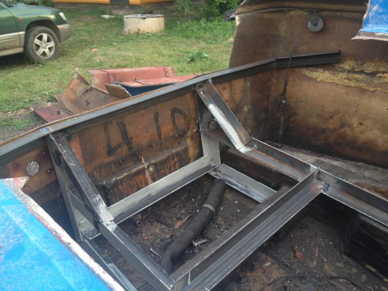 Прикупил уголок,полиэфирки и рогожи.Выпелен транец,сварена рама.