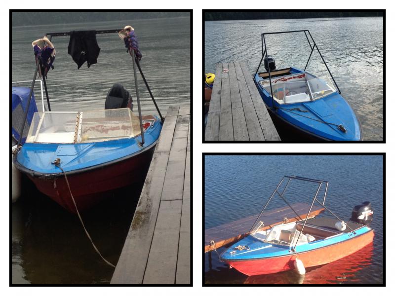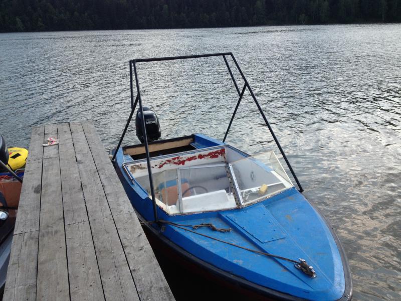 Это первый опыт переделки стеклопластикого катера.Вклеил транцевую доску[att..Вынужден был делать очень быстро-середина лета,хотелось еще успеть опробовать всё это на воде.Был куплен мотор Сузуки DF-140 года 2002.Тут был мой первый серьезны промах,транец делал в размер под длинную ногу,а мотор оказался еще длиннее...Выяснилось это только в процессе установки мотора.Получилось как то такРабота над внешнем видом можно сказать еще не начиналась,сезон закончился,катер в 150 км от города-законсервирован.Катер делался для буксировки вейка,при отгрузки балластом волна нормальная,двигателя хватает,понятно,что супер волны от него ожидать глупо,но тем не менее получился недорогой буксировщик.