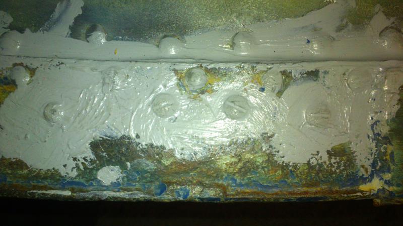 Окей, вчера отмыли вековую грязь из внутренностей, теперь займемся залатыванием дыр и проверкой герметичности с помощью мела и соляры.