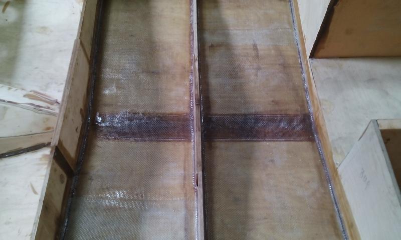 Да обклеивал с обеих сторон в нути-все стыки и углы сначало галтели потом полоски, внутри в один слой. Снаружи все обклеивал с нахлестом в 15 см Борт в один слой, Дно два слоя стекло ткани затем один слой паутинки и по килю стеклорогожу шириной в 1 метр. На скулах получилось по три слоя плюс слой после приклейки брызгоотбойника и того четыре слоя. По килю получилось пять слоёв
