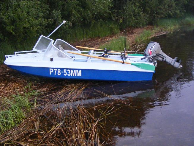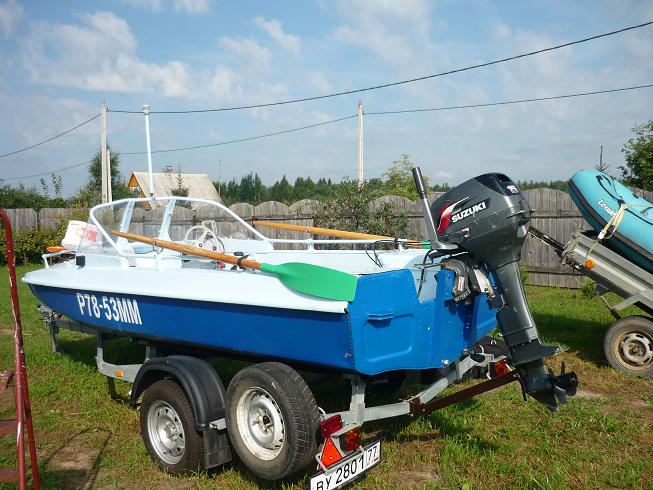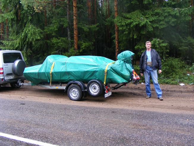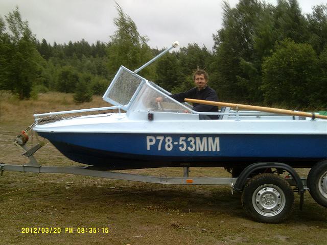 При спуске лодки на воду, обнаружились недостатки прицепа. Слишком низко расположена вся арматура и номер. При контрольном выходе на воду, сломались уголки на которых крепился транец. Дюраль не выдержала.