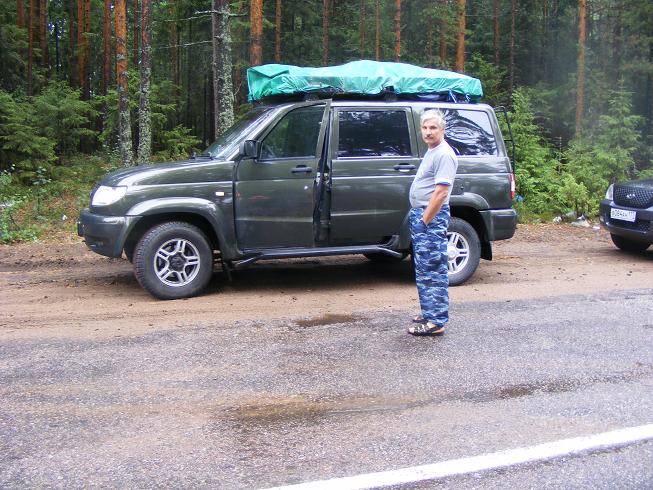 Верхний Сволочек прошли на раз, без остановок, что порадовало. Путь далее без проблем. Только после В.Новгорода туман и укладка нового асфальта. Везде барьеры, нет разметки, ночь и туман. На повороте на Кириши привал. Подремали полтора часика, двинули дальше. Перед Киришами дозаправились, мороженого поев, двинули, следующая остановка Сясьстрой, позавтракав соляночной и гуляшом, продолжили путь дальше. Нас ждала Карелия. После Ладейного Поля ливанул дождь, даже не стали останавливать возле Арки республики. Пост проехали без проблем. Свернули на Олонец и следующая остановка в Видлице. Но оказывается, дед перестал делать кузовки. Пришлось ехать далее. Как всегда после Видлицы, на Ладоге фото- и видео- сессия.