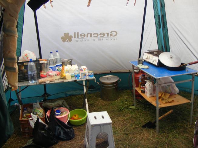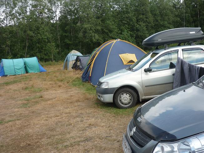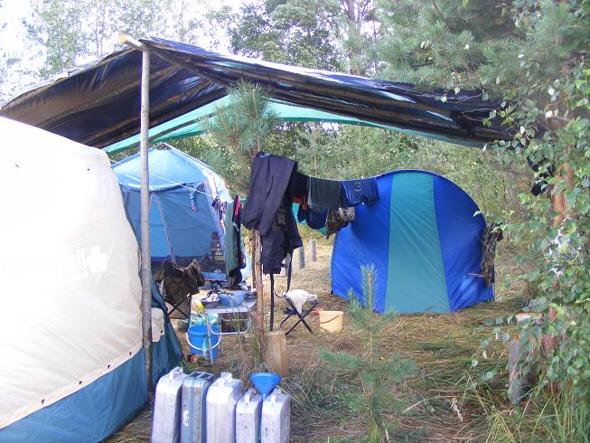 Последний бросок и мы на месте. Но оказалось что «наше место» занято. Пришлось разбивать лагерь на большой поляне. Начали с шатров, кухни и столовой. Обмыли приезд, подъехали еще гости, начали ставить палатки.