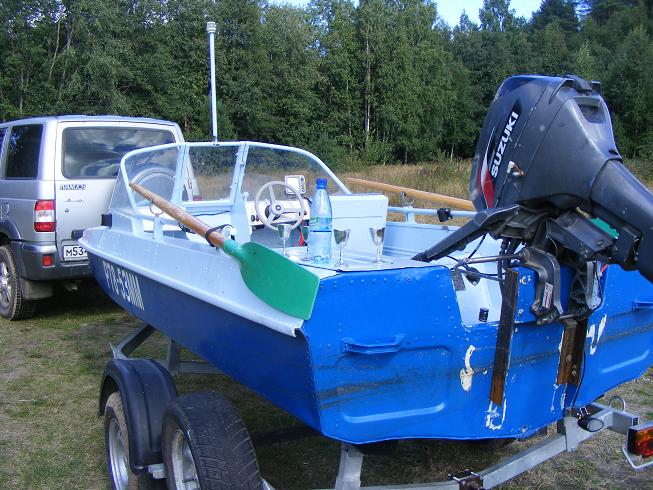 Проснувшись поутру, позавтракав….., мы с Леонидычем, Александром (то же полковник), двинули в Питкяранту искать стальной уголок под транец. Нашли быстро, в одной ремонтной мастерской за хлебзаводом. Приехали…. посидели…., начал транцем заниматься. Благо дрель взял и сверла. Как чувствовал, ни когда не брал, а этот раз взял. Час работы и транец как новый.