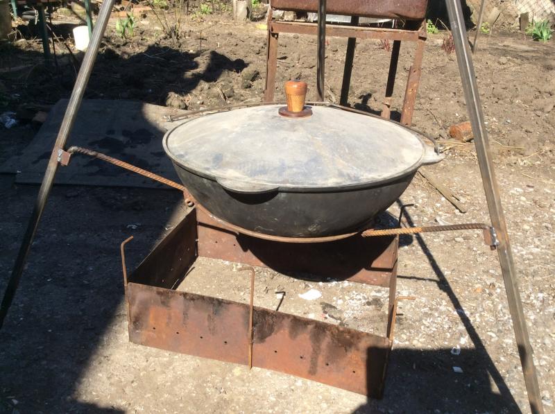 А х.з , 6 пловов пережил уже . Там домкрат то и не обязательно ставить , можно просто труба в трубу , поднимать за ручку на трубе и вставлять болтик в дырочки , для регулировки высоты . Ну и в сторону от огня можно повернуть , если огонь через чур разбушевался .
