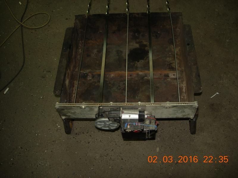 :) По мангалу; идея моя,но Друг помог воплотить в железо.Особенно с редуктором который в общем то и освобождает от сидения,стояния у мангала.:pardon: :good: