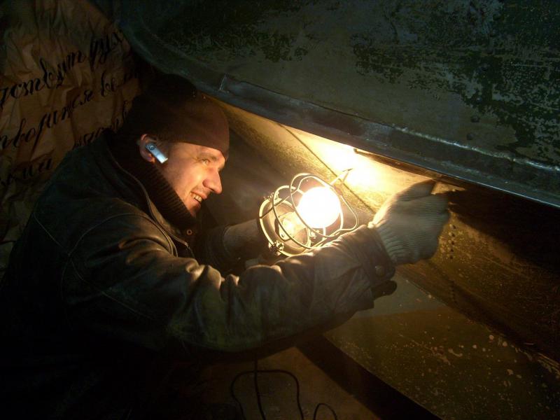 Сегодня совместно с Андреем за часок с помощью "болгарки" и его дремеля оформили местА под заплаты/накладки, подчистили между килем и днищем "сгоревшую" эпоксидку и всякий мусор - ЭТО ПИПЕЦ!!! :shock: ....