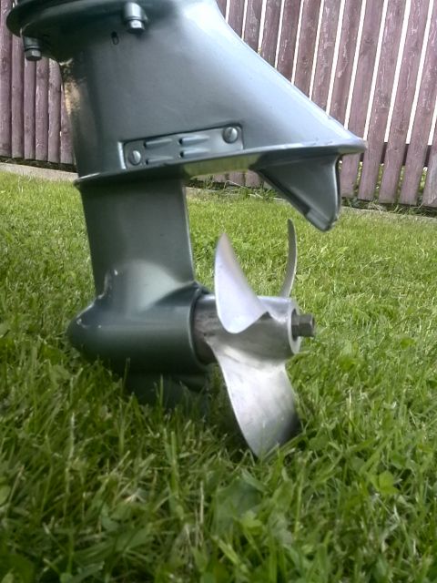 Достался винт от старой сузы 5л.с.годов 80х.Шаг170/диаметр200.Решил быстро ибюджетно поставить.Внутрянка унего на14мм-сделал две втулки из миллимитровой полосы.Пришлось на токарном снять около 3-х мм ступицы и внутренней втулки,т.к. упиралась в сапог.Вот и все переделки.Завтра посмотрю,как будет на воде.В бочке после включения передачи газку пиишлось побольше добавлять,чтобы не глох.Выкладываю фото.
