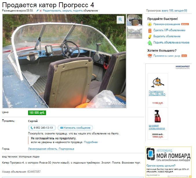 Дмитрий, походу Вы свою лодку продаете...DeLongs сказал(а):https://www.avito.ru/sankt-peterburg/vodnyy_transport/motornaya_lodka_yamaha_20_605487993
