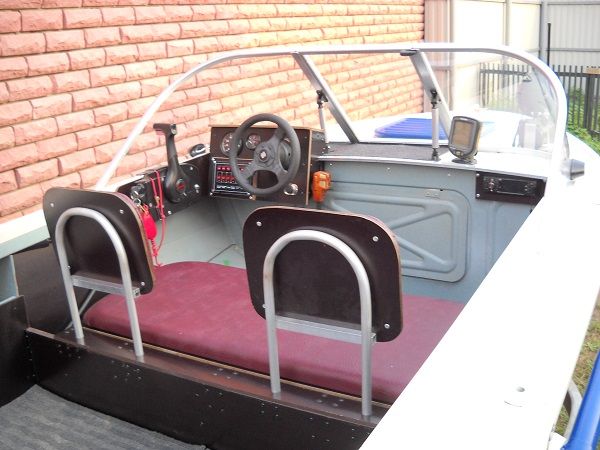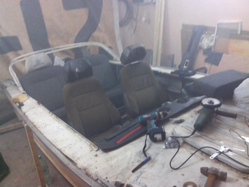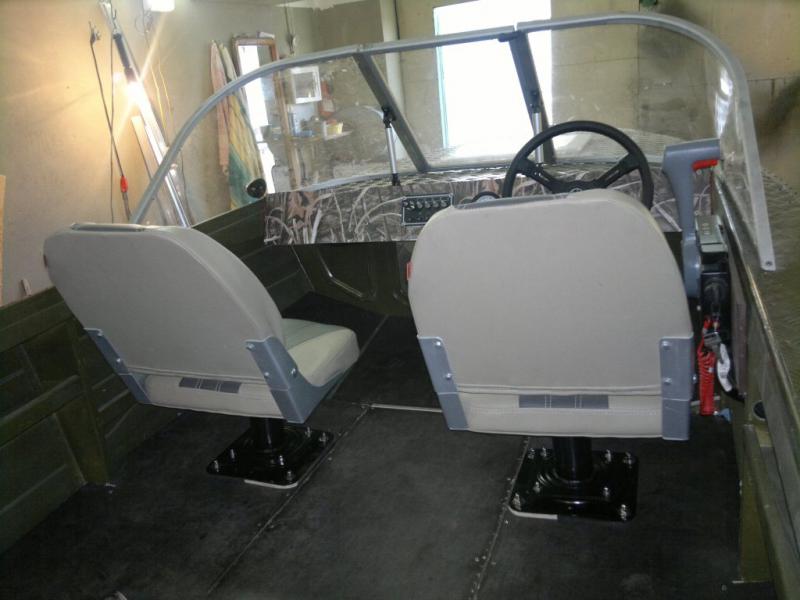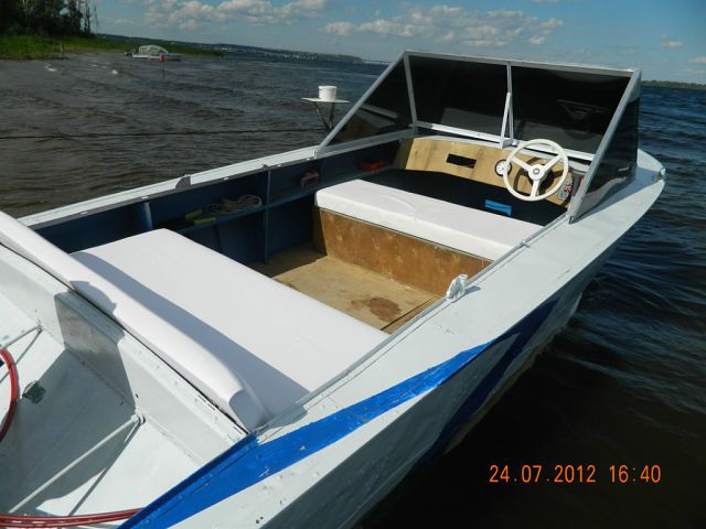 Когда мой друг намучился с Радугой 420 ,он решил приобрести прог 2.По объявлению нашли продавца.Продавал молодой парень лодка досталась по наследству,и вот он решил ее тюнинговать. Пайолы постелил из фанеры 10 мм установил на переднем месте на рундук кресла от микроавтобуса.На корме раздвижной диванчик выкинул установил пассажирские кресла тоже от микроавтобуса,установил саф буфер колонки,магнитолу ,.Лобовое стекло -заднее стекло от москвича 412.Когда спросили продавца почему продаешь он ответил что его прог 2 с сузукой 30 с 3 человеками ели ели выходит на глиссирование,что будет покупать катер со стационаром и более мощным двигателем.Говорил что на Сузуку на АКП устанавливал крылья тогда лодка выходила на глиссирование.Друг который купил попросил чтобы я лодку сделал в заводской комплектации.Сняли мы стекла ,кресла с переди и с зади выбросили пайолы Ребята общий вес барахла за 150 кг. Пайолы и кресла оказались довольно тяжелыми.-лишний вес и есть причина не выхода на глиссирование.Лодка не была оборудованна тентом для ночлега поэтому старый хозяин возил с собой палатку ,разборный туристический столик и кресла,холодильную камеру для пива В лодке реально не куда было ногу поставить. При ремоте лодки пайолы сделали из алюкобона 4 мм ,получились легкими,да и не гниют .Кормовой диван и преднее сиденье в заводской комлектации. Стекла и тент выписали по почте из конторы лодка 44.Переделал я ему транец под его мотор Меркури 25 4-х тактный под ногу L с отливным рецессом.Лодка с 4-мя человеками и 60 литрами бензина реально выходит на глиссирование