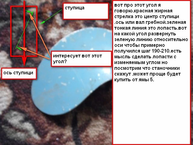 кто подскажет какой оптимальный шаг винта для прибоя.и как разметить лопасти на ступице.суть темы в следующем.случайно увидел что Алекс ovchinnikov 1966 ищет лопасть от гвиш-1.я такой винт видел у знакомого.лопасть запасную выпросил у него для Алекса .ну и покрутив ее перед носом появилась идея сделать винтик на прибой.выточить ступицу у токаря просверлить в ней три отверстия.на лопастях обрезать выступ с зубцами вставить лопасти в ступицу и обварить изнутри аргоном.весь вопрос под каким углом ставить лопасти.прислонив лопасть к ступице прибоевского винта заметил что диаметрполучается такой же.