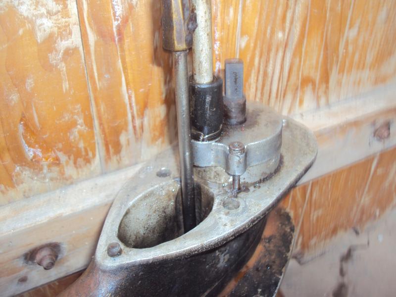 Привет, всем! Думал тягу разборной сделать. Передумал. Просверлил отверстие в дейдвуде наверху, тонкой отвёрткой тягу слегка поправил в своё гнездо и вуаля - "Птичка в клетке". Собирать естественно надо редуктором кверху, и трубки вроде нормально попадают и поддон/блок снимать не надо.