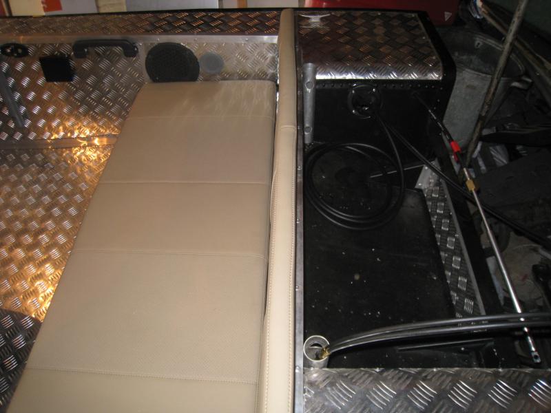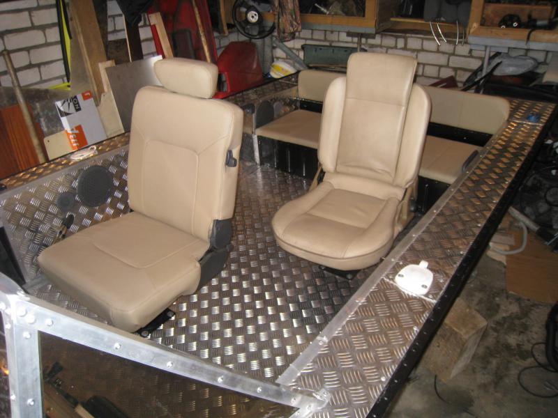 Я бомболюк неделал да и он там мне впринципе ненужен. У меня там бак 50 л стоял на который можно было всякие мелочи ложить и штатные блоки плавучести 5 шт. Да и резать лодку у меня рука неподниметься. Для всякого шмурдяка есть огромный задний рундук. Как то так. Да и вот пару фотак моего дивана . :)