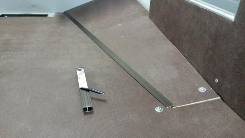 части сланей стыкуются таким вот алюминиевым профилем (его используют в изготовлении мебели - двери шкафов)