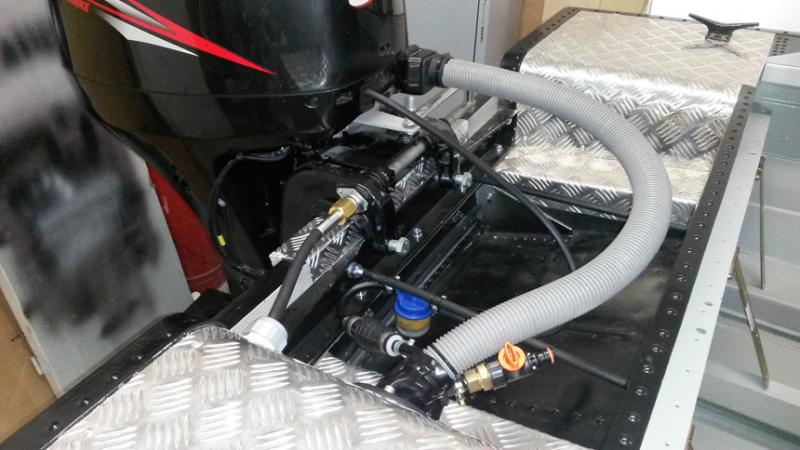 осталось самое интересное - подключение оборудования и мотора :) рулевой, газ-реверс тросы 13 футов. я думаю в самый раз, длинее не надо. на фотке видно где выходят концы.
