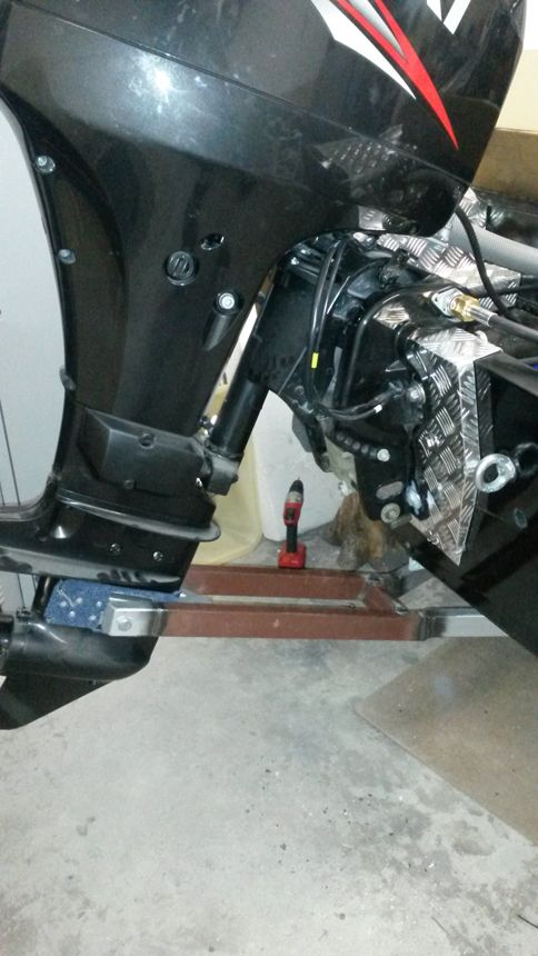 Дальше корма. Через рым болты до швеллера проходят шпильки М12 внутри алюм.труб. После установки двигателя будут добавлены ещё 2 шпильки проходящие через отверстия крепления самого двигателя до швеллера для дополнительной жёсткости.