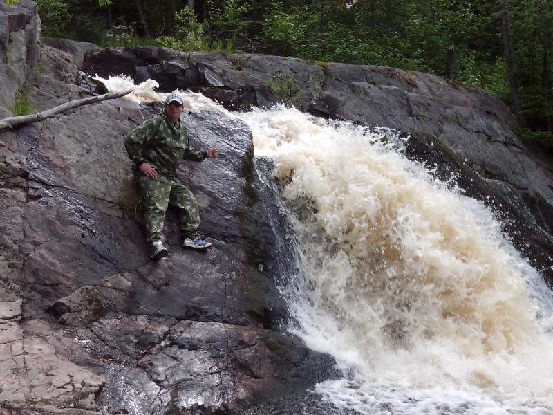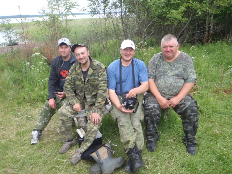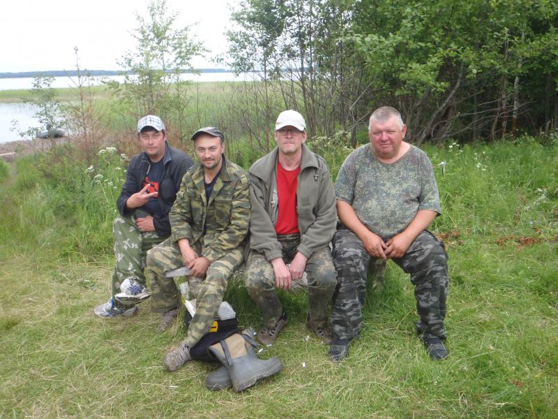 Сидели до 2,00, как будто и не было длинной дороги. Белые ночи… За рюмкой чая… и в хорошей компании время летит не заметно. Первую ночь спали 2-3 часа, утром на рыбалку. Я вернулся к 8-ми. Нужно было ехать за газом. У одного товарища часы показывали 8-мь, на самом деле 9-ть. Опоздали к газовщикам, в Питкяранте. Кое как нашел телефон центральной АГНС. Созвонился, уговорил, поехали. Спасибо добрым людям, помогли… с газом… решение многих проблем.. Хотя наши ребятишки готовили на костре. Романтики… Заехали на обратном пути на Водопад, в магазины, на рынок, затарились. Приехав на место. Оборудовал кухню, потом конечно присели… Как без этого? Понедельник. Сходили на рыбалку.