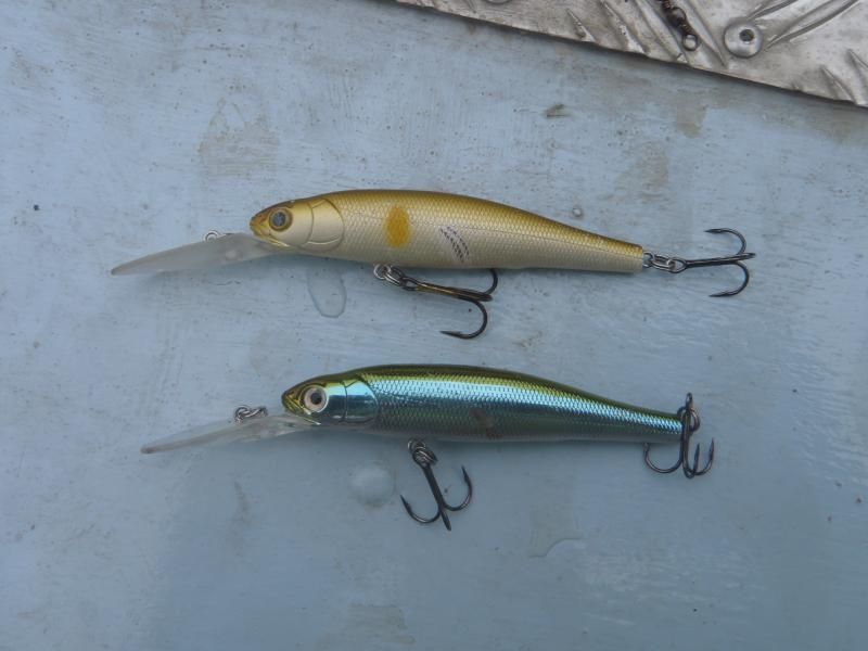 Судаки сперва капризничали, брать не хотели. Начал подбирать ключик. У ребят сразу заработали воблеры Zipbaits Rigge, у меня заработали Liberty Bite 90SP. На них брали не только судаки но и щука и окунь. Разловился еще один китаец,(нижний) но на него брал покрупнее.