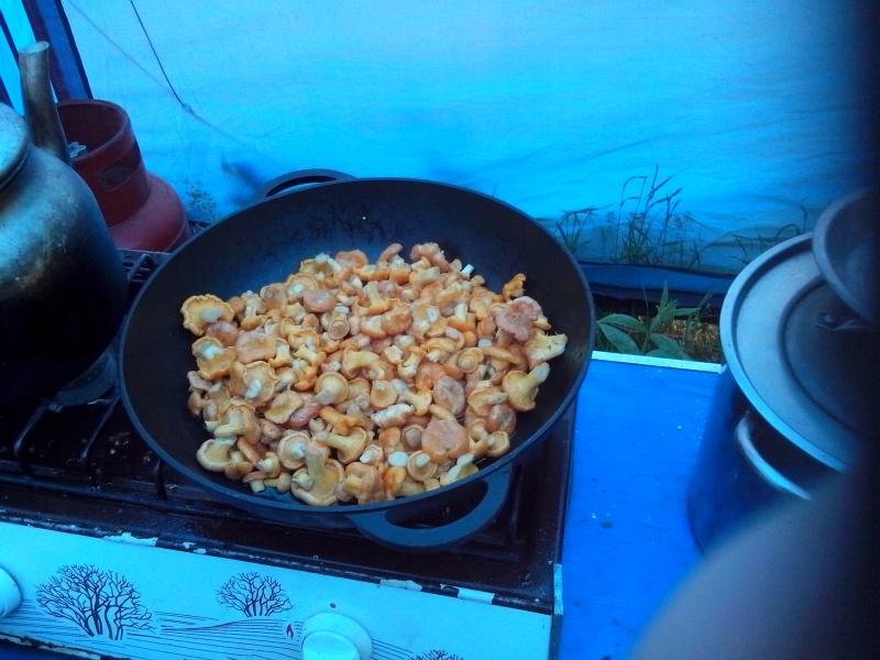 Отдельное слово о «кухне». Какое было счастье, что с нами поехал Слава, мастер кухни. Он нас баловал разносолами. Плов готовил на костре, грибной супчик, грибная жареха, супчики разные, яичницы всевозможные, баклажаны запеченные в фольге. Разносолы на столе. Когда они уехали мы опять перешли на «печенюшки» Так как Игорь готовит не умеет, а мне лень(я из тех кто из строя не вышел), то питались только печеньем, пряниками, «печеньем в клеточку» и чаем. Хорошо что не долго.
