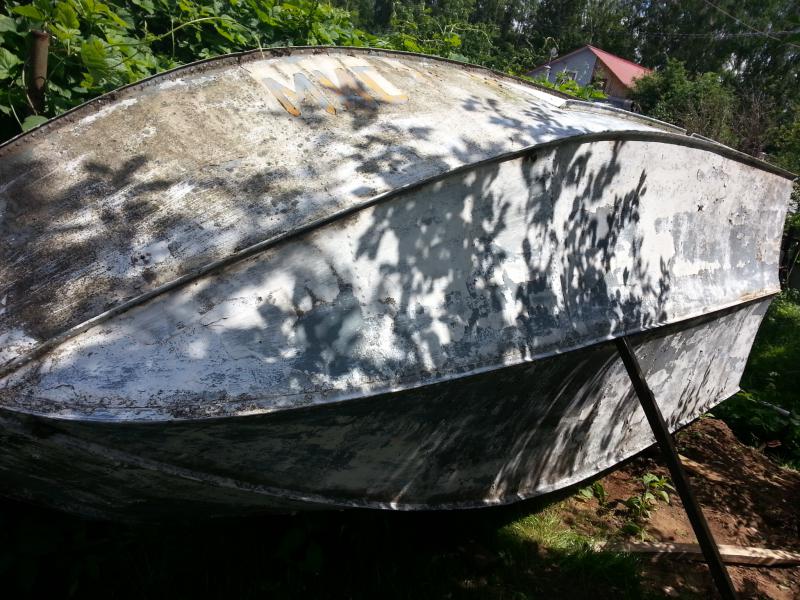 Привез на дачу свой прогресс. На стоянке стали пованивать, говорят платить надобно. При ближайшем рассмотрение после выгреба мусора, корпус окахался весьма в неплохом состоянии! Гнили нет вообще. Относительно ровненький, есть одна пробоина по правому борту, почти под привальником. Сейчас заниматтся некогда, начну с наступлением холодов зачистку,.