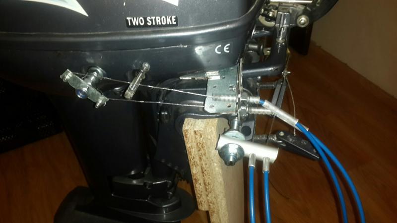 Для управления работой мотором нужно два троса газ-реверса, один на управление газом другой на управление вкл выкл передач и контроллер (машинка)