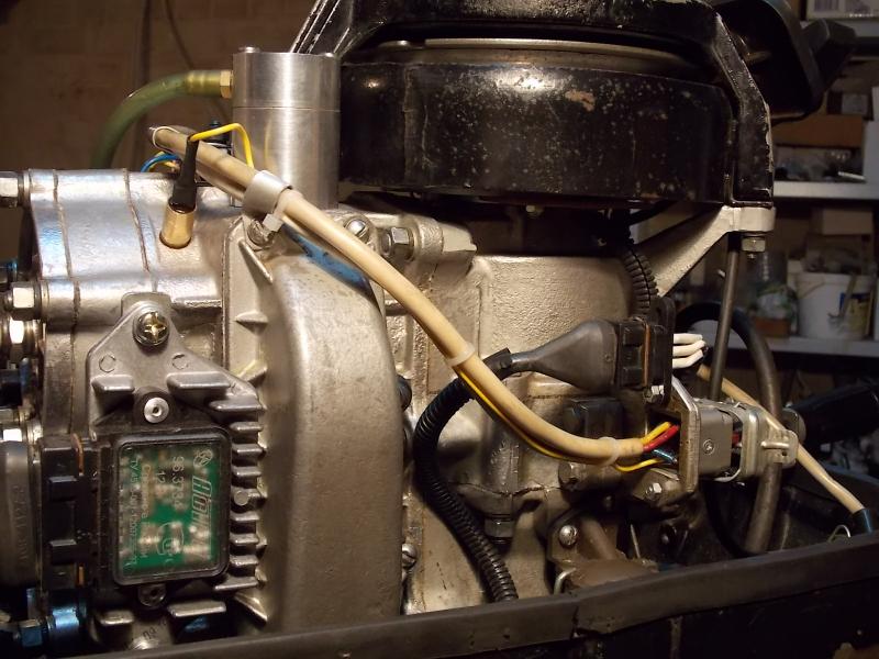 Родных прокладок к термостату у меня не было в комплекте (в момент покупки термостата) по сему поставил две плоские тонкие резиновые прокладки с верху и снизу термостата, но давление высоко и они (прокладки) просто не справлялись, пропуская излишний поток циркуляции. Стемнело довольно быстро и работы по доводке уплотнений перенесены в мастерскую. Завтра планирую продолжить испытания. Специально для нашего форумчанина, накрутил карбюратор на 500 об.мин. смесь разумеется обеднять не стал, зачем же мотор без смазки гонять