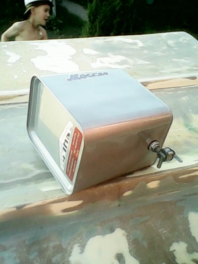 Бак из жестяной канистры из под масла, растворителей и т.д. Горловина отрезана из корпуса водяного фильтра водоснабжения. Паять можно смело,он типа из латуни. Пластиковую пробку- горловину снять и из такой же жести вырезать пятак. Так же запаять. Паял бол.паяльником и малой газовой горелкой, Прогреть и припой сам ровно растекается. Краник любой, от мото техники. Единственное развлечение, закрутить гайку изнутри бака на кранике