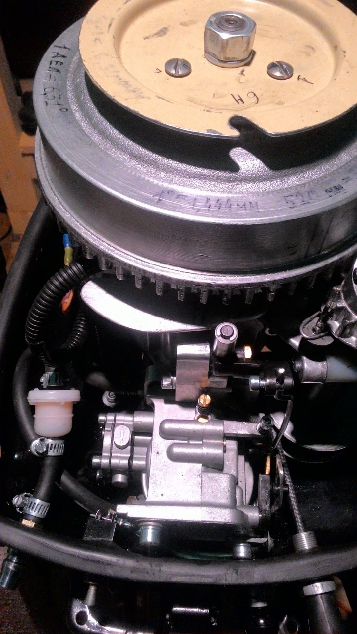 Вот так установлен карб и согласован с зажиганием. Еще раз повторюсь, мне понравилась и работа и что теперь мотор будет без соплей из карба. Если кто-то хочет сказать, типа: В бочке они все работают, ты на воде покажи... Повторюсь, это не моя идея, люди ставят и работает у них все нормально. Ну и у меня на Москвах тоже работают без проблем. Поставил еще на одну голову, Весной, если не заберут, то сам прокачусь на этом моторе.