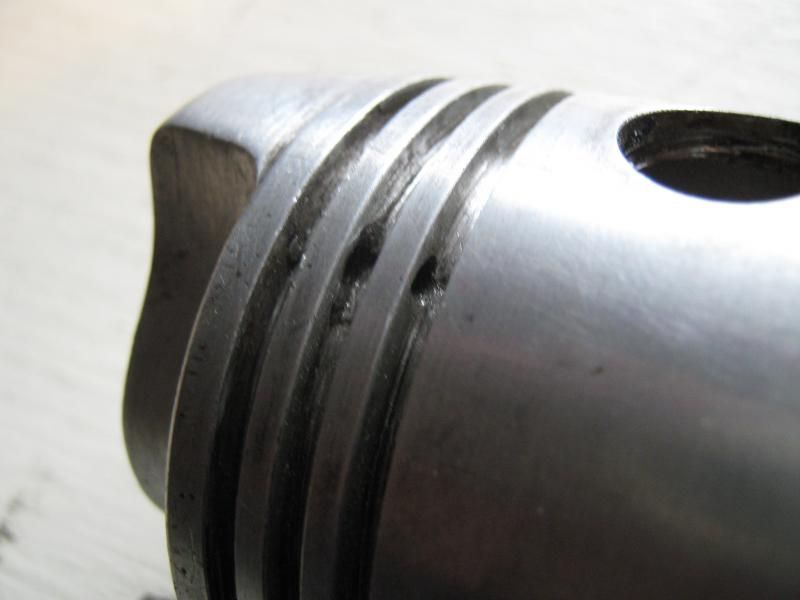 --- Примите мои 5 копеек ... Поршень на фото практически без износа . а стопор колец весьма помят .. , проволока там г....я . При переборке всегда удалял и вставлял стопорок из сверлышка подходящего диаметра . Сдвиг стыка поршневых колец --печальные последствия . ЦПГ изнашивалась в ноль --стопор , как вчера вставлен . ИМХО , конечно .