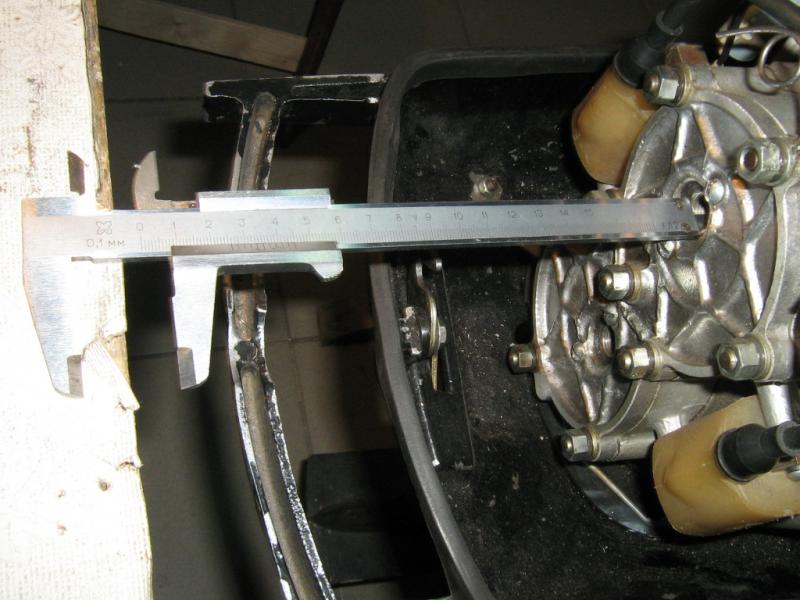 Добрался сегодня до мотора и как обещал выкладываю фото отчет по настройке синхронности работы цилиндров. Для начала необходимо нанести метки на маховик с помощью нехитрых приборов вымеряем три положения поршня, ВМТ, 1мм раннего (что соответствует УОЗ 5 градусов) и 5мм раннего (что соответствует УОЗ 30 градусов. Надо сказать что на маховике Нептуна уже имеются метки ВМТ но проверить их не помешает. И так приборы, замеры. Вот два простых варианта, надо сказать что точность замеров в этом случае оставляет желать лучшего.