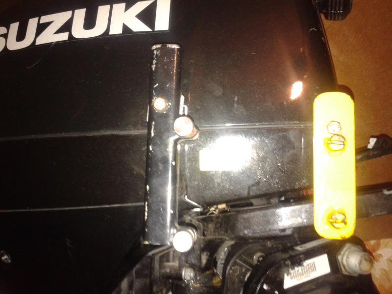 чёрная крепится на пластиковый рычаг реверса с помощью болта м5,жёлтая крепится на корпус мотора с помощью болта м6,имеет сверловку под тросики(тросики в металлической оплётке колхозно советской, не вспомню,вроде от печки жигулей,конечно удлинёные)
