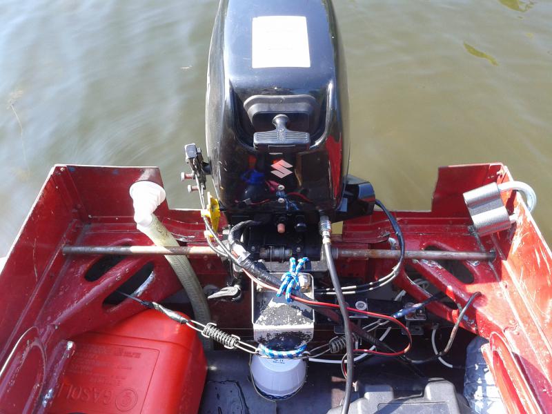 румпель теперь отойдёт на приличное расстояние,и далее его закрепляли на транце с внутреней стороны горизонтально помощью двух струбцин(конечно всё размечать,струбцины изготавливать и присверливать по месту)