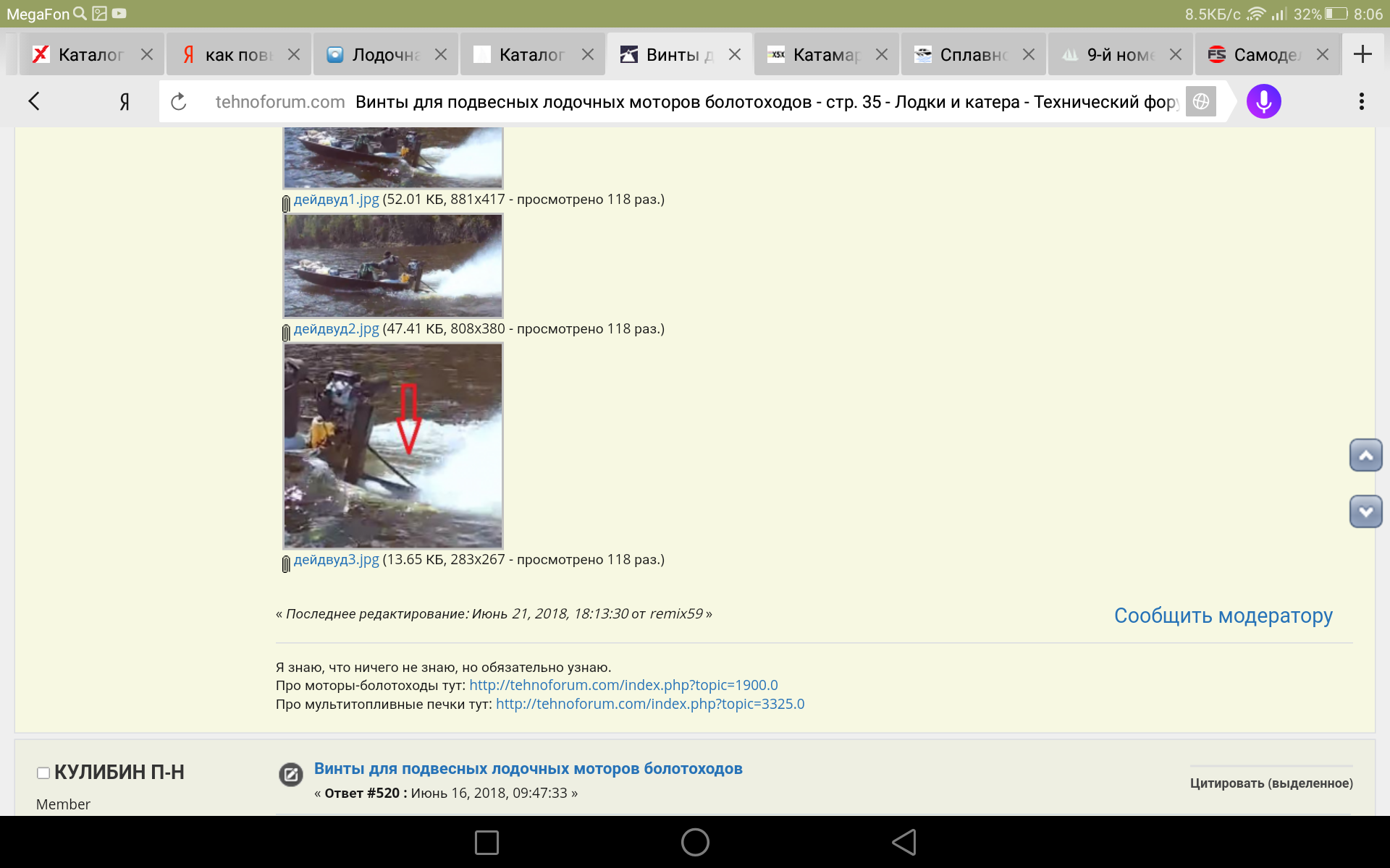 Это лечится отбойной доской - от нижней кромки транца до палубыа забыл про винт и обороты.. использовали стандартный 11 с мотором... накрутил 2900об. поставил 9 шаг достиг 3500об. мотор рычит но не едет. и момент. достигая 13до 15 км идет захлеб движка.. перед ногой двигателя мвозникает волна с пузырями. плавно перехожужу дальше и корма подымается и ... поехали ровненько.. кто подскажет че не так и как лечить?