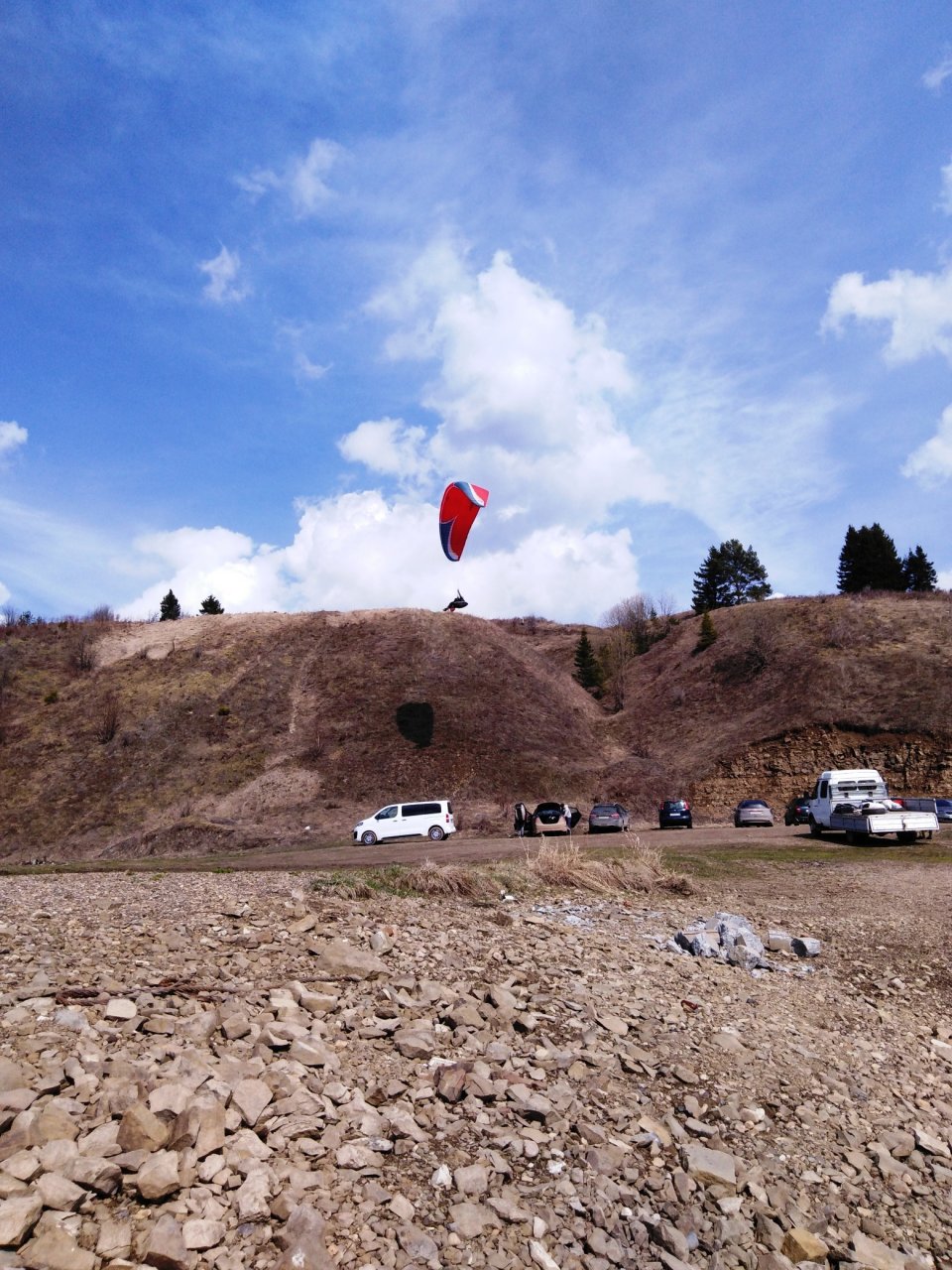 В тот же день на берегу активно отдыхали и парапланеристы, благо дело погода горы и ветер им сопутствовали.