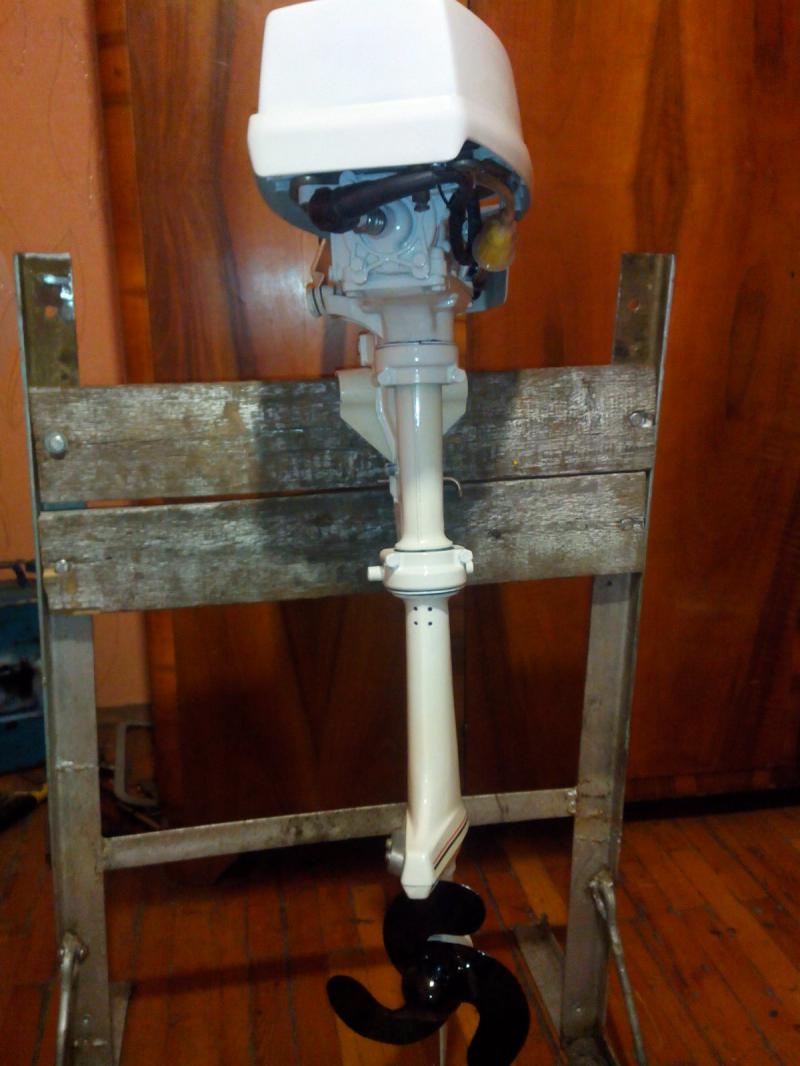 Когда получил,то начал искать шильдик. Шильдик не нашелся. И места от него не было видно. По VIN- номеру определил его как Jhonson 1.2hp 1988г.в.. Мотор оказался неубитым и почти в полной комплектности .За исключением крутилок х.х. и гл. жиклера. Немного поиздевались над ним при покраске колпака. Наверное,красили с закрытыми глазами