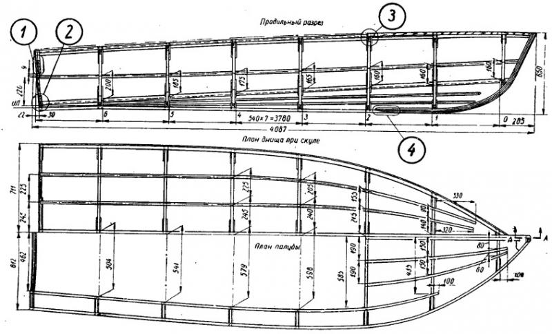 Сборка катера производится на стапеле — доске размером около 40X200X4500 мм. Доска должна быть закреплена на козлах на ребро. На стапеле по теоретическому чертежу размечаются шпации.