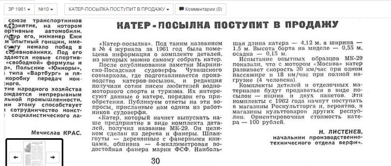 Добавлю статью-заметку про МК-29 в журнале "За рулем" 1961 года № 10