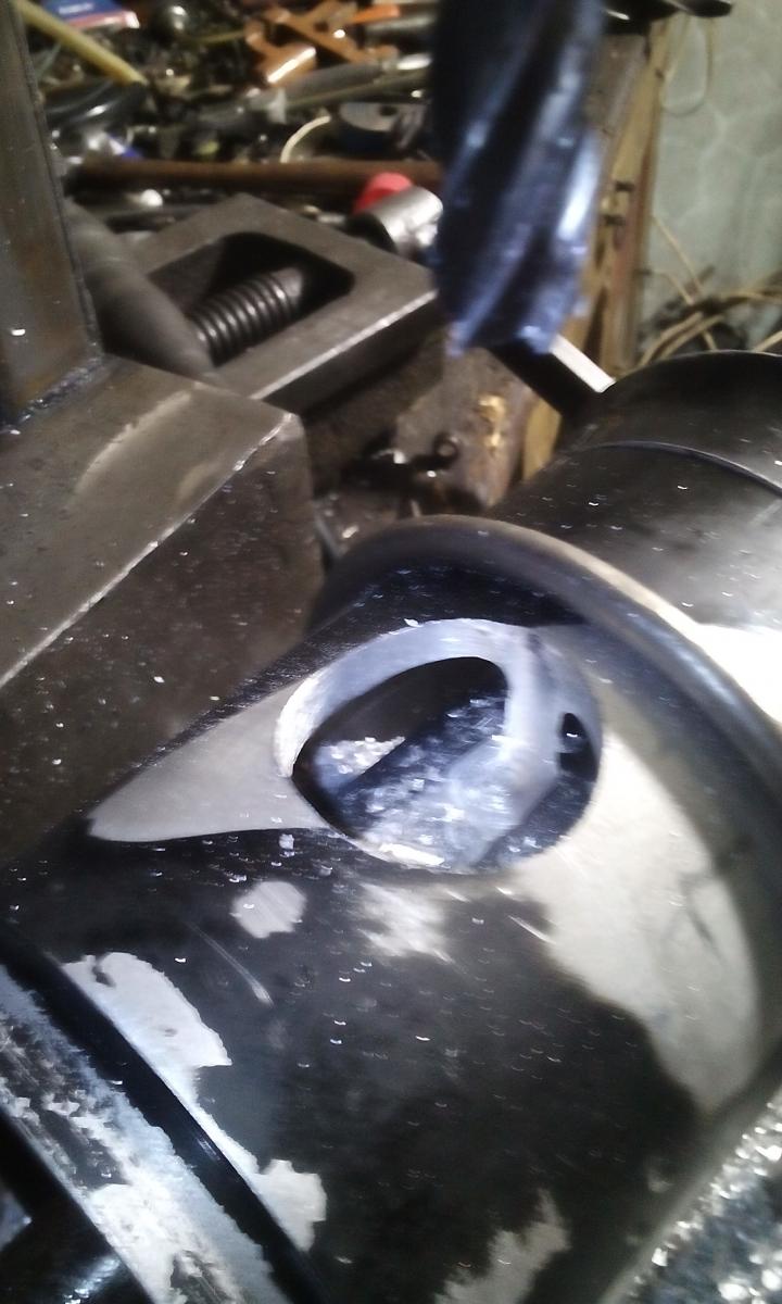 Самое сложное для меня было просверлить винт без последствий деаметром 30мм под втулки. но посидев подумав было принято решение сделать хомут скобу и притянуть им винт к станине станка