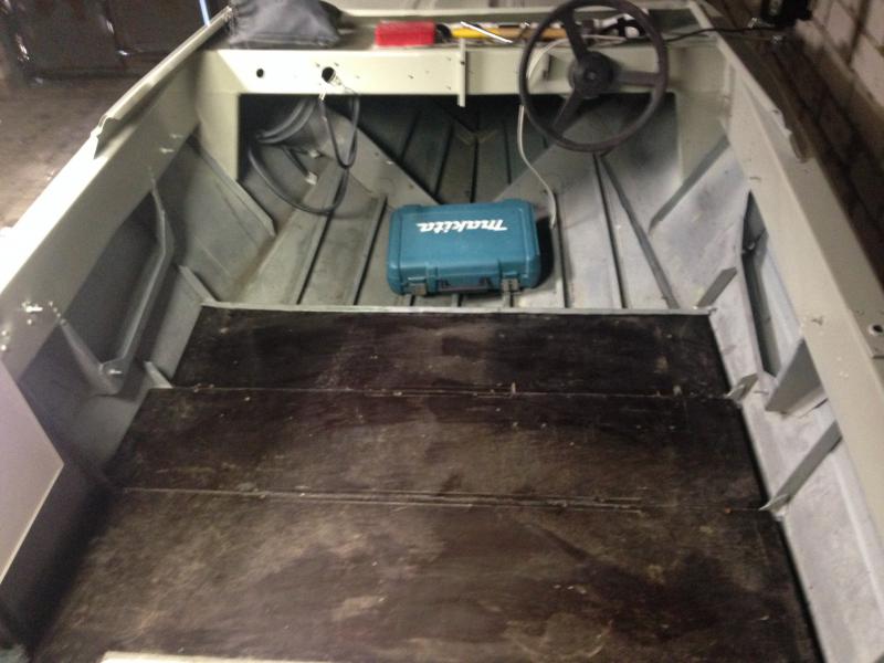 Купил свой КРЫМ в сентябре 2014 года в хорошем состоянии за 58 тонн. По внешнему виду на нём нет ни одной заплатки, следов ударов, трещин и прочих повреждений, влияющих на утрату плавучей способности. Лодка была перекрашена один раз, причём делали качественно, содрана заводская краска и грунт, но вот качество краски мне не понравилось, да и цвет хотелось не такой унылый. Привёз КРЫМ в гараж, вылили из него литров 100 воды, т.к. он стоял на улице без тента. Разобрал на части салон, сделал деффектовку имеющихся деталей. Решено: слани оставить с небольшой доработкой, сидения-рундуки переделать, рулевое управление оставить без изменений, машинку газ реверс заменить, стекло на реставрацию, лодка под покраску, транец усилить, блок плавучести в носу оставить и увеличить плотность набивки пенопласта, и ряд иных доработок, об этом по порядку.