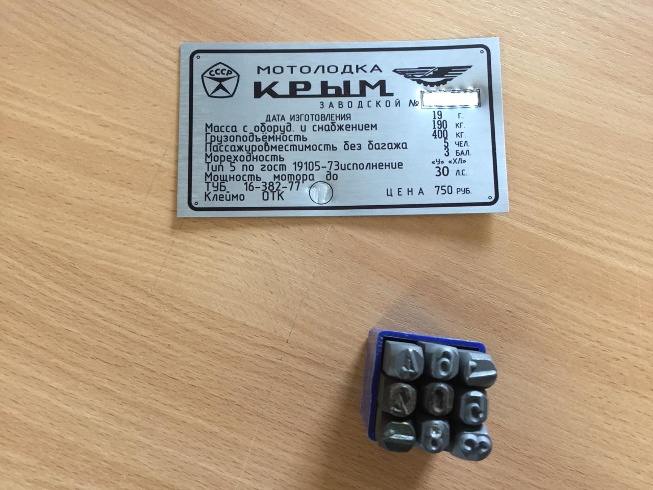 На моей лодке шильдика не было, только номер на киле, и судовой билет прошлого владельца, поэтому второстепенной задачей ставил восстановление заводской шильды.