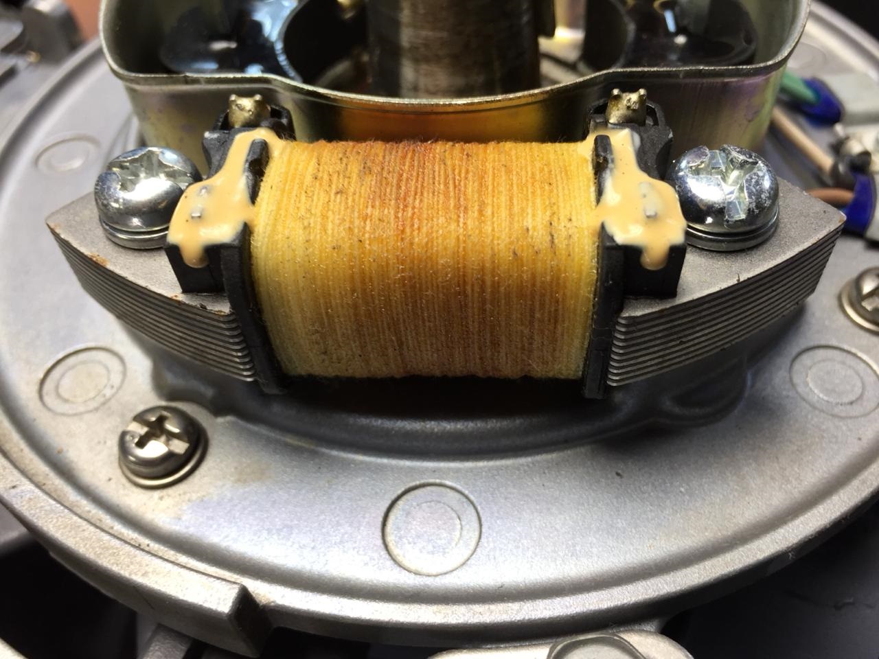 На очереди было магнето, точнее кроме него ничего нетронутым не осталось. Разобрал, прозвонил катушку на зажигание - обрыв, на рабочем моторе померил сопротивление - 376 Ом.