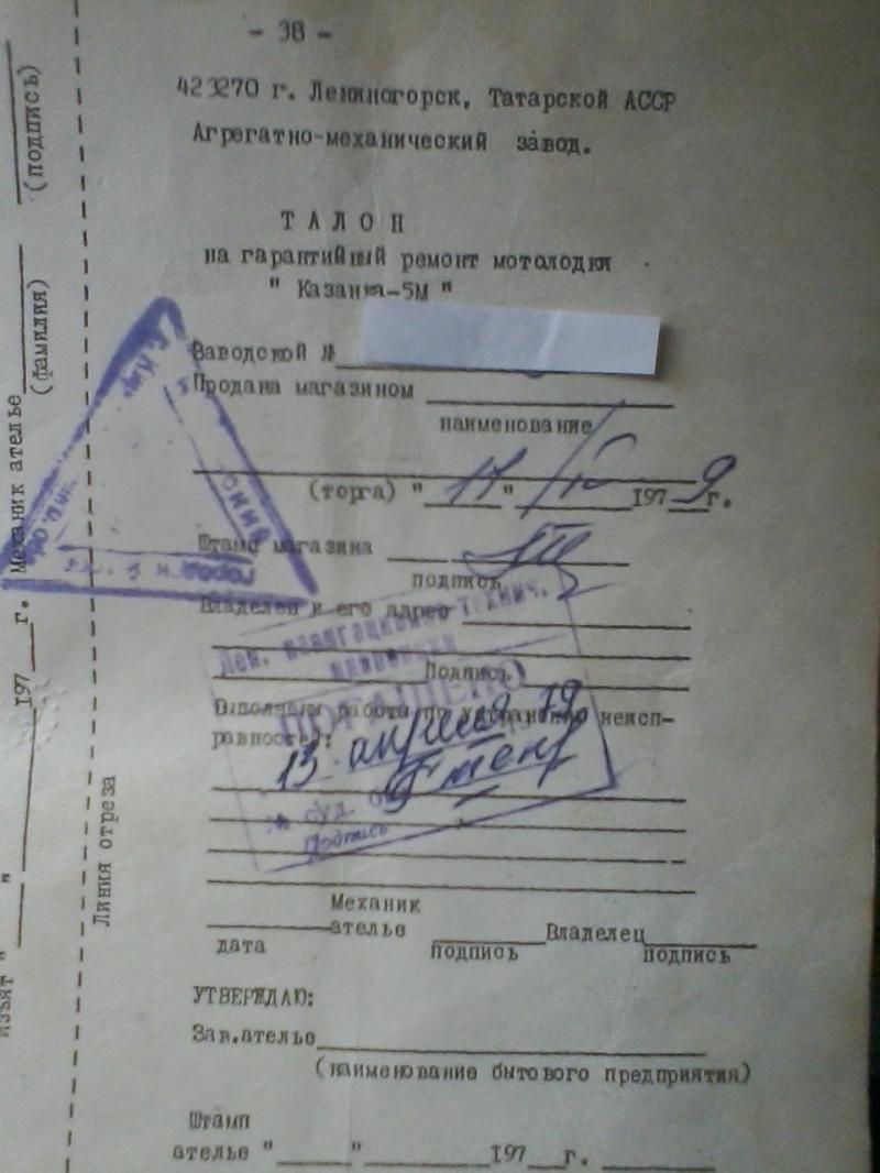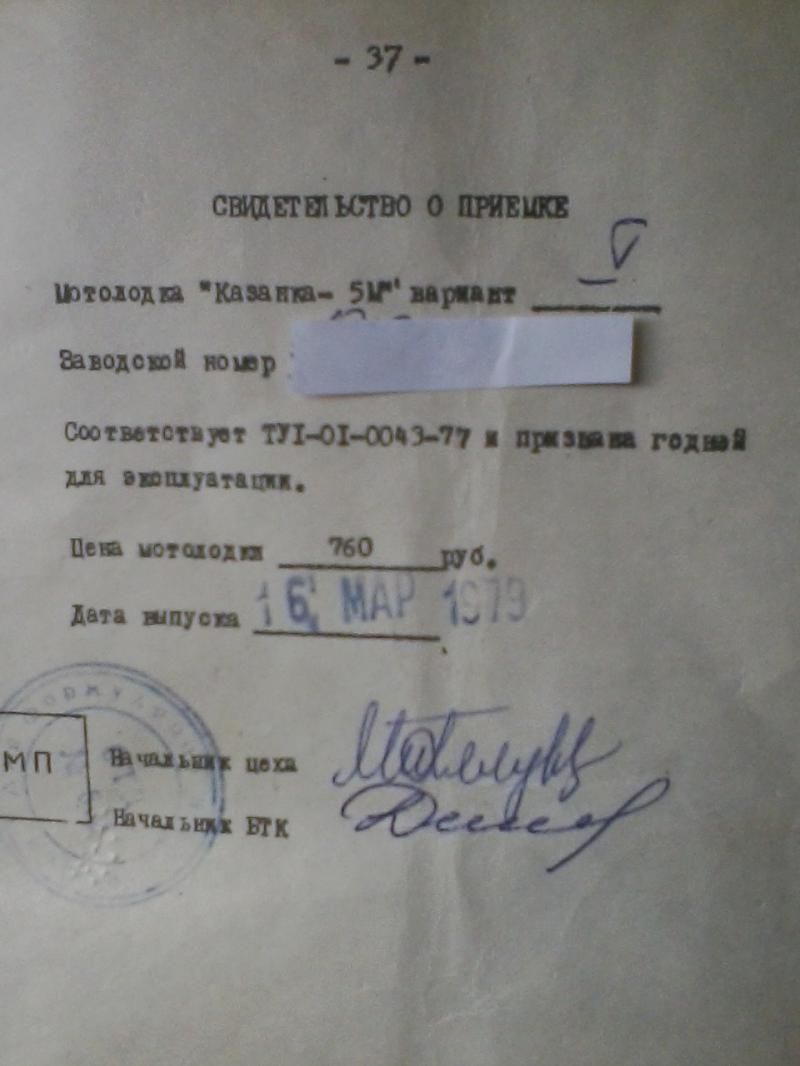 Нужен скан или фото паспорта на Казанка 2 М.