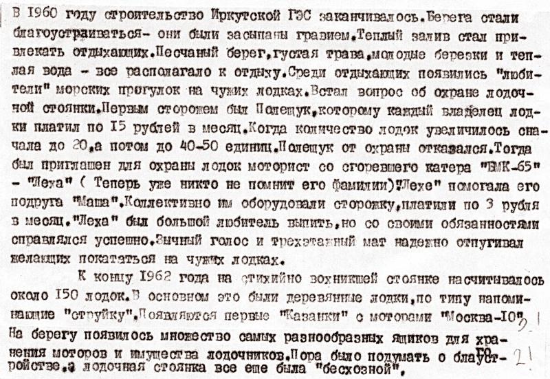 Но, оказывается и это было не первое место расположения стоянки нашей! Сначала она была прямо на теперешнем пляже ГЭС. Да вот страницы сейчас выложу. Читайте историю...