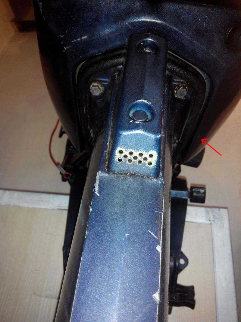 5. В воскресение обратил внимание, что на ходу на хороших оборотах кроме как из контрольки идет струя воды из отверстия в поддоне. На воде не было возможности посмотреть что под колпаком делается, по приезду в гараж посмотрел что и откуда. Получается что шла вода просто из дренажного отверстия. На фото показал из какого: