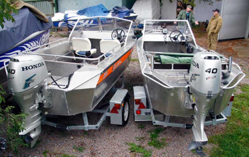 Кто-нибудь устанавливал второй (выносной) транец на вельбот 45? На фото, лодка справа. Задница у неё не под прямы углом (на срез идет), поэтому не знаю, как лучше установить транец. Интересно ваше мнение о том, какой транец лучше выбрать. Хочу установить выносной транец, чтобы троллинговать на менее мощном моторе.