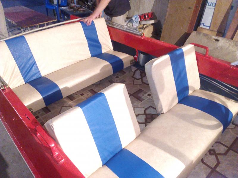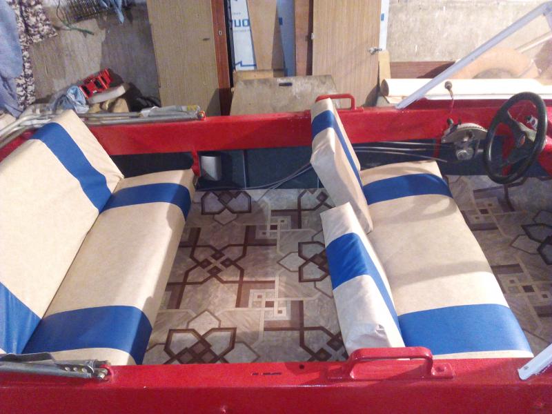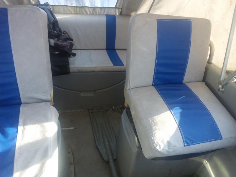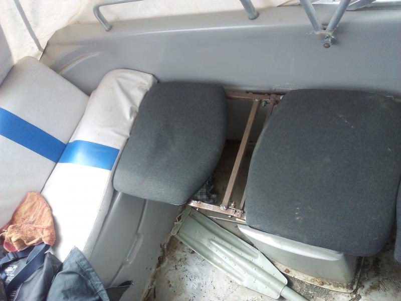 Взял сиденья от офисных стульев и прикрутил к каркасу и получился раскладной стульчик. Сделал я их пару. В четверг поеду прикручу вместо родных. Ходить на лодке уже можно. Потом из кожзама сошью чехлы и буде мне счастье (надеюсь). Теперь не надо возить полатку матрасы и т.д.