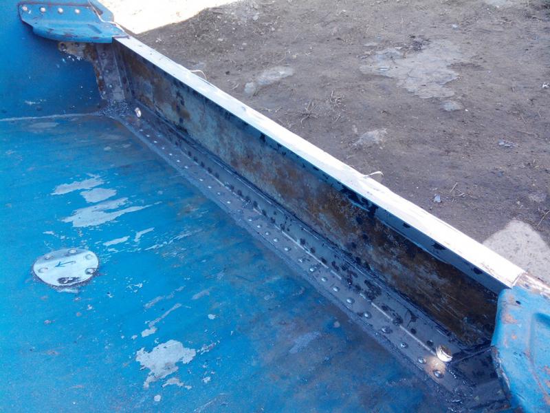 Брус очень упругий, его в теплую погоду хорошо крепить - он эластичный делается, насаживали его на борта вдвоём, метр насадили, клепаем (20 см друг от друга). клепки брал 4мм на 18 мм с широкой шляпкой. 18 мм оказалось впритык, и на стыках алюминия 2 клепки так и не расклепались. Так как он очень упругий, на герметик сажать не вариант... ничем его по всей длинне не удержишь!