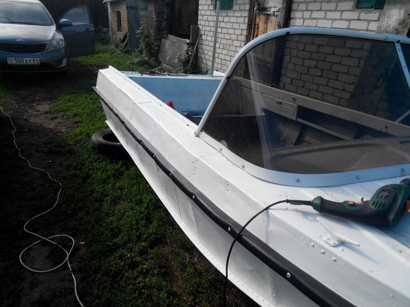 Автору: а разьве нельзя его приклеить просто, чтоб стальных заклепок не было видно. ИМХО на светлой лодке идеально черный привальник смотрится выигрышнее !