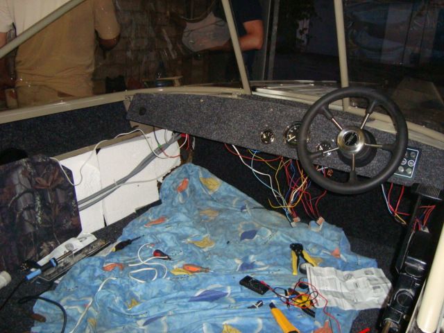 А вот пока рабочие фото моих трудов, сразу скажу что Прогресс-4 не мой, я просто его делал на заказ, начиная от скулы и транца под 508-ю ногу, теперь приятель мучает проводку, я не люблю с ней возиться! фоновая расцветка не в моём вкусе, а хозяин настоял, так и покрасил! Бак на 42л и 70Ампер в "полубаке" а помпа в транце... Рамку гнул сам, поликарбонат дорогущий, осталось калитку вцепить...